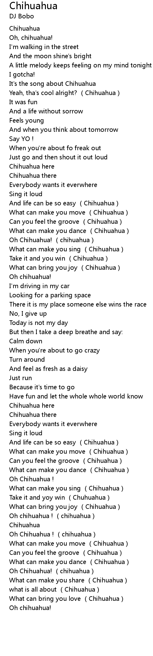 | [00:54.62] | And life can be so easy (Chihuahua) |