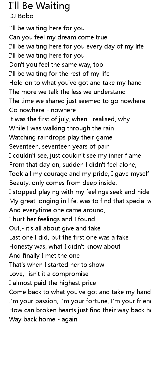 | I'll be waiting here for you | |