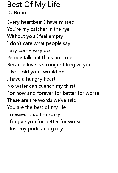 | You are the best of my life | |