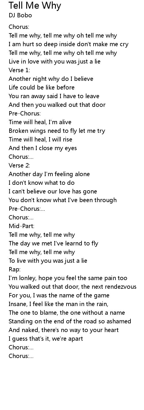 Tell me why, tell me why oh tell me why |