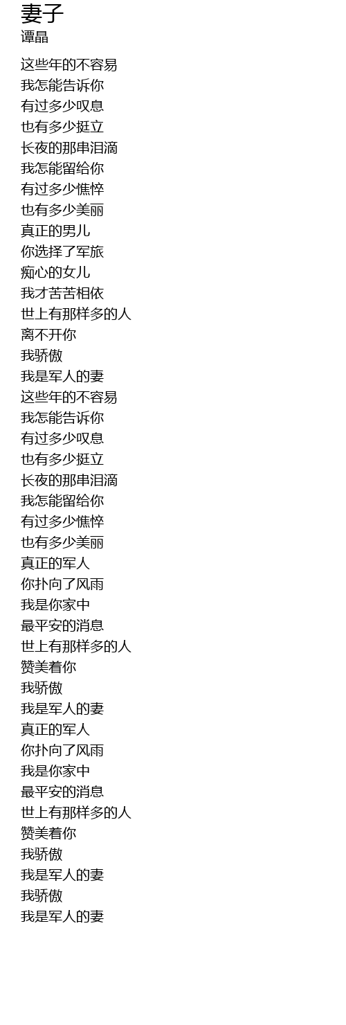 | [04:27.570] | 我是军人的妻 |