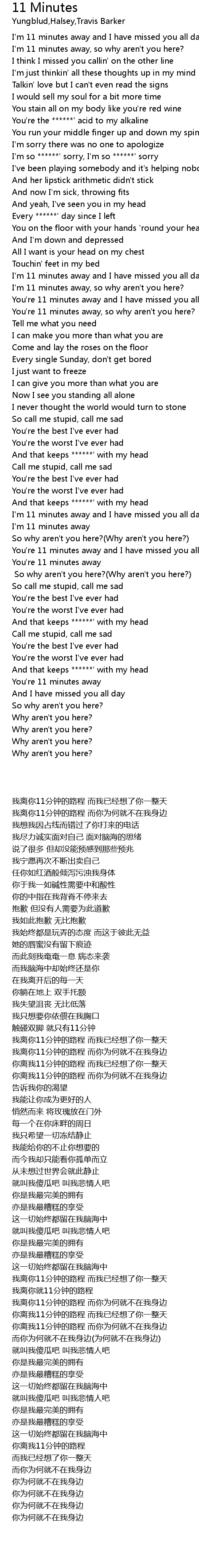 You're 11 minutes away and I have missed you all day |