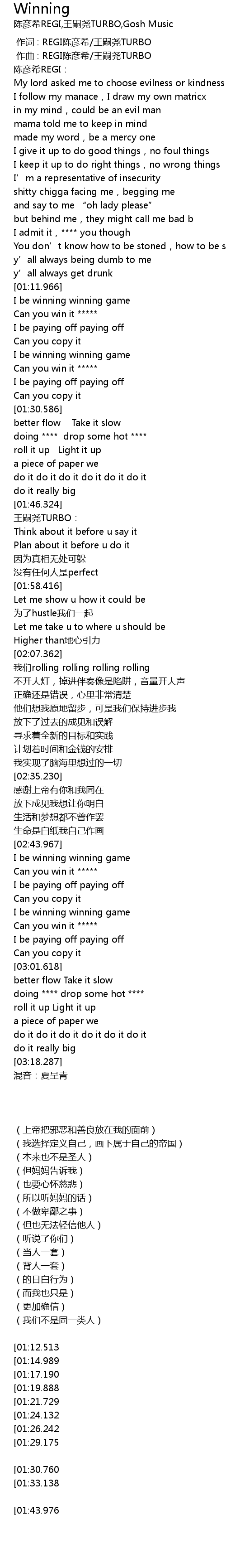| [01:21.729] | I be winning winning game |