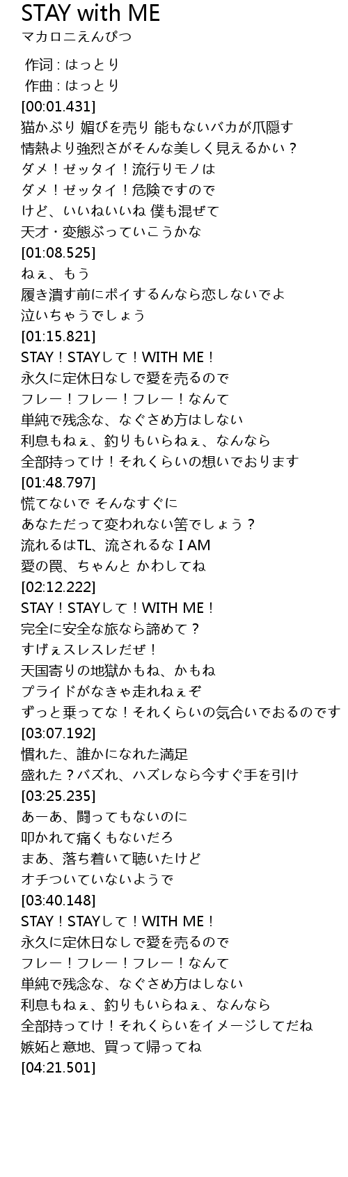 | [02:34.252] | STAY!STAYして!WITH ME! |