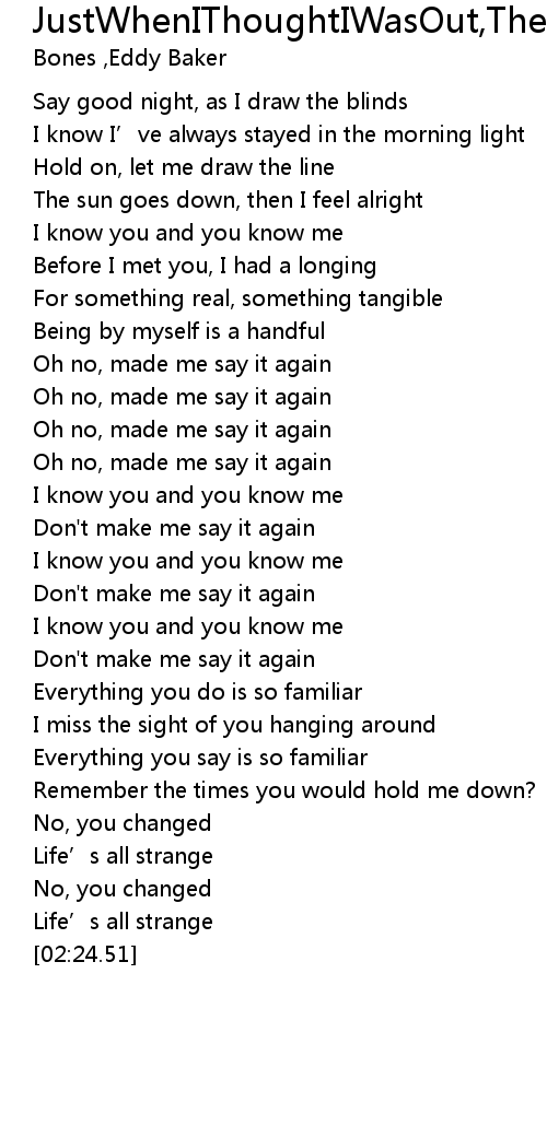 | Song | JustWhenIThoughtIWasOut,TheyPullMeBackIn |