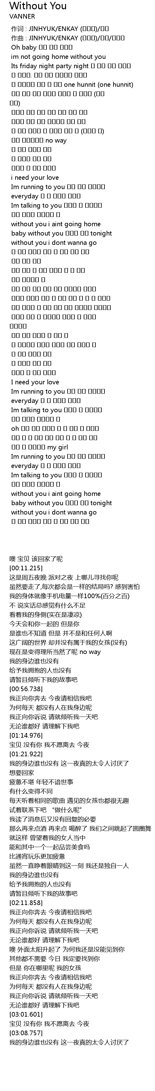 | [03:04.991] | baby without you 떠나기 싫어 tonight |