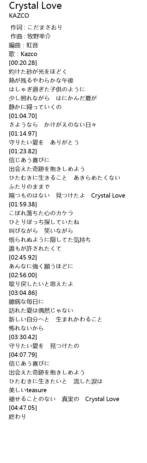 | [04:35.31] | 褪せることのない 真実の Crystal Love |