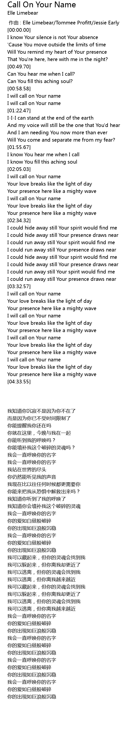 | [03:33.75] | I will call on Your name |