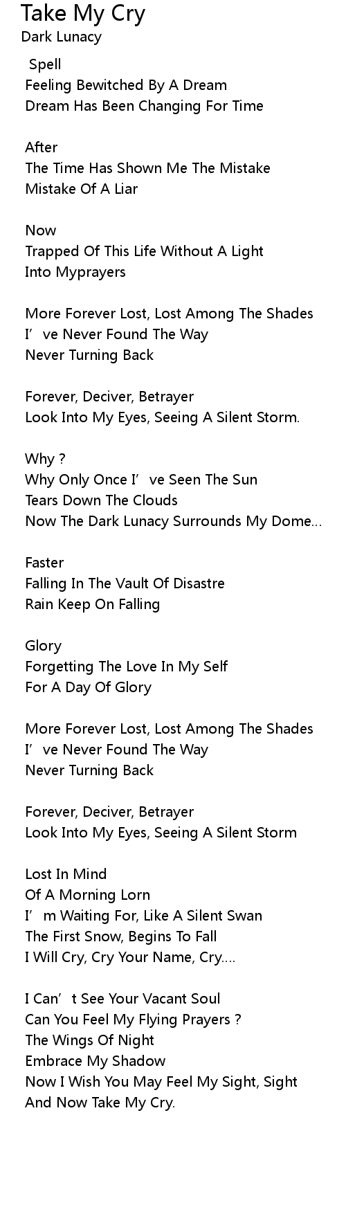| I Will Cry, Cry Your Name, Cry. | |
