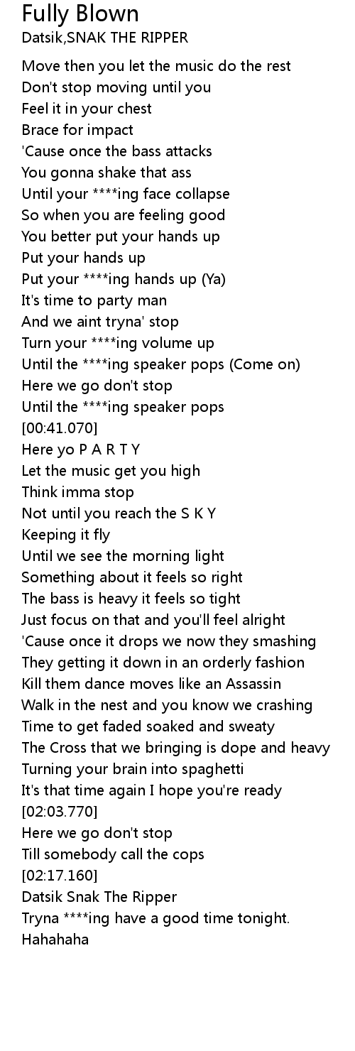 | [00:19.150] | Put your ****ing hands up (Ya) |