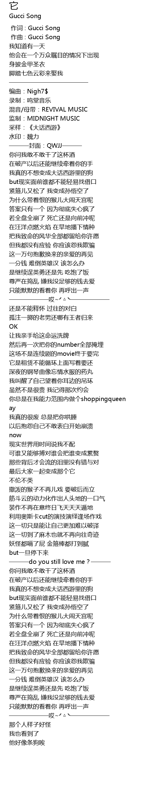 | [00:00.098] | zuò qǔ : Gucci Song |
