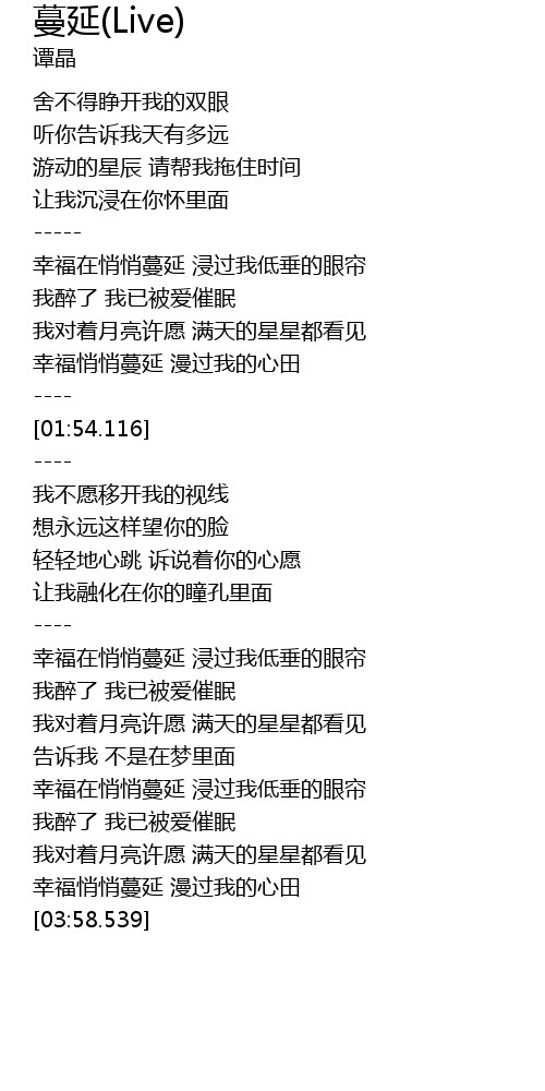 | [03:21.869] | 我醉了 我已被爱催眠 |