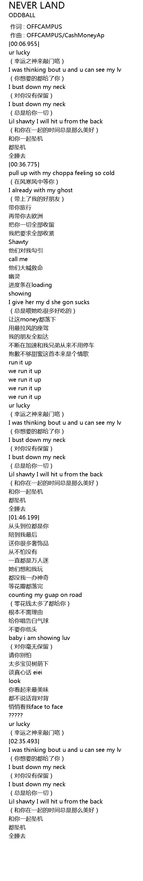 | [00:01.000] | zuo qu : OFFCAMPUS CashMoneyAp |