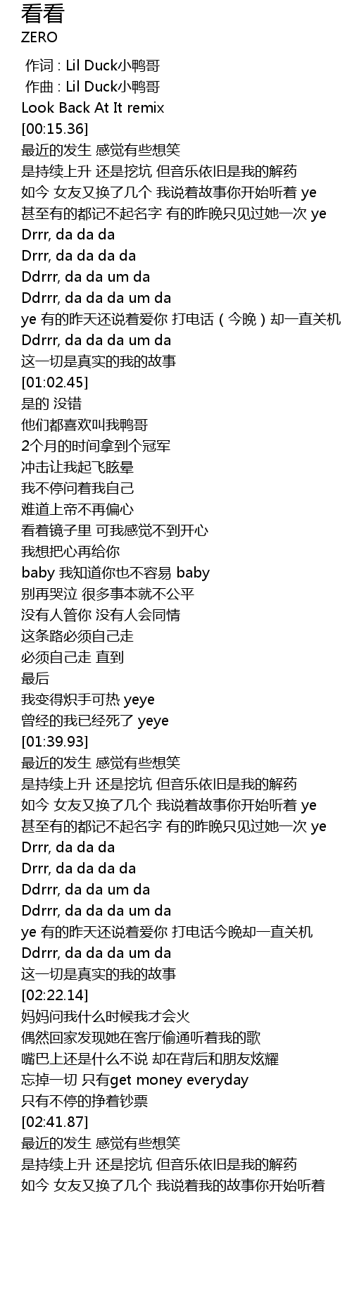 | [00:01.000] | zuo qu : Lil Duck xiao ya ge |