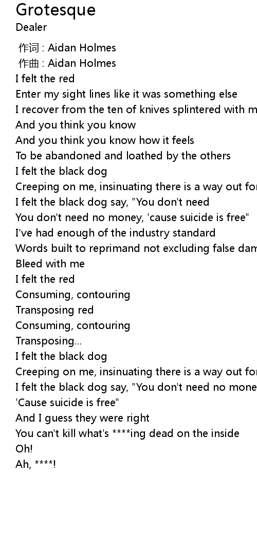 | [00:44.308] | You don't need no money, 'cause suicide is free" |