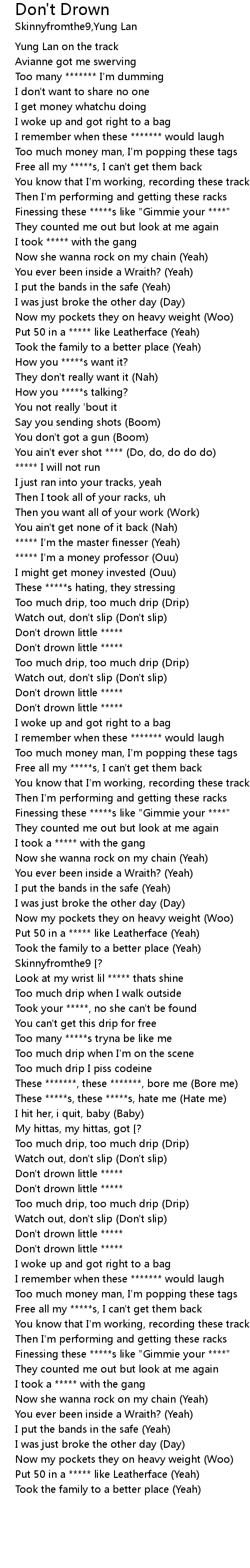 Too much drip I piss codeine |