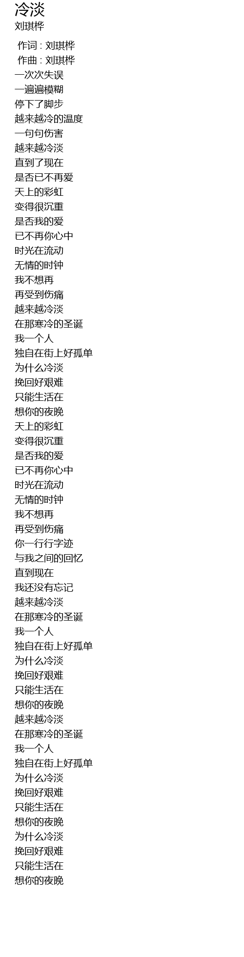 | [01:32.430] | 为什么冷淡 |