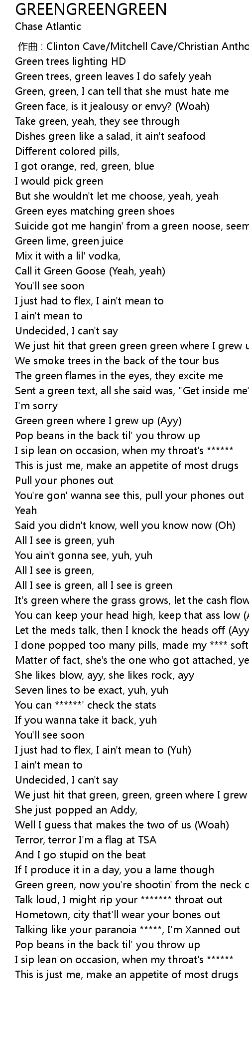 | [00:41.69] | Call it Green Goose (Yeah, yeah) |