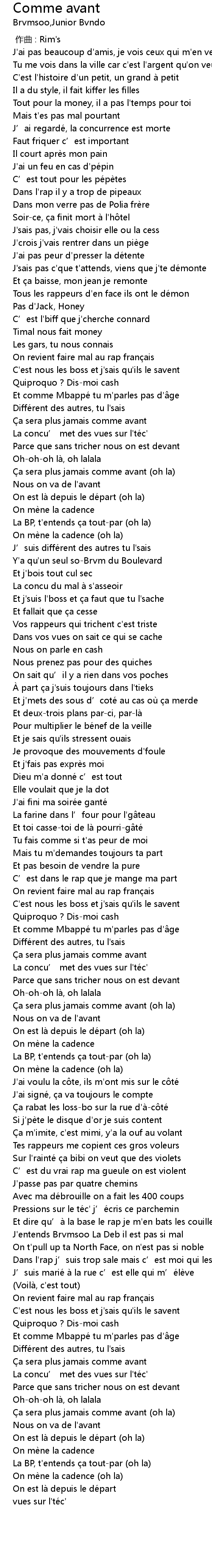 | Song | Comme avant |