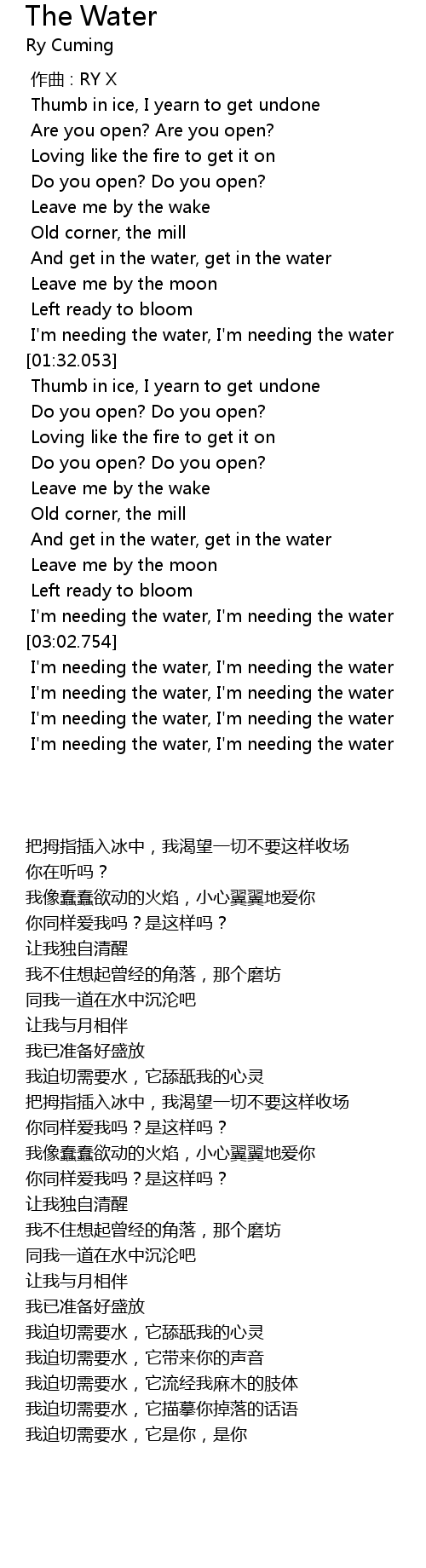 | [01:23.028] | I'm needing the water, I'm needing the water |