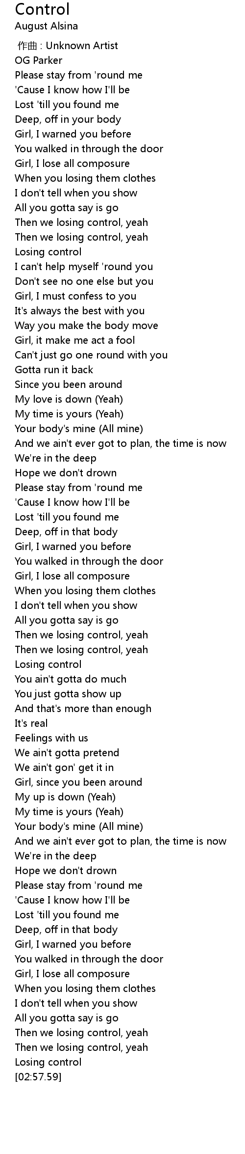 | [02:50.91] | Then we losing control, yeah |