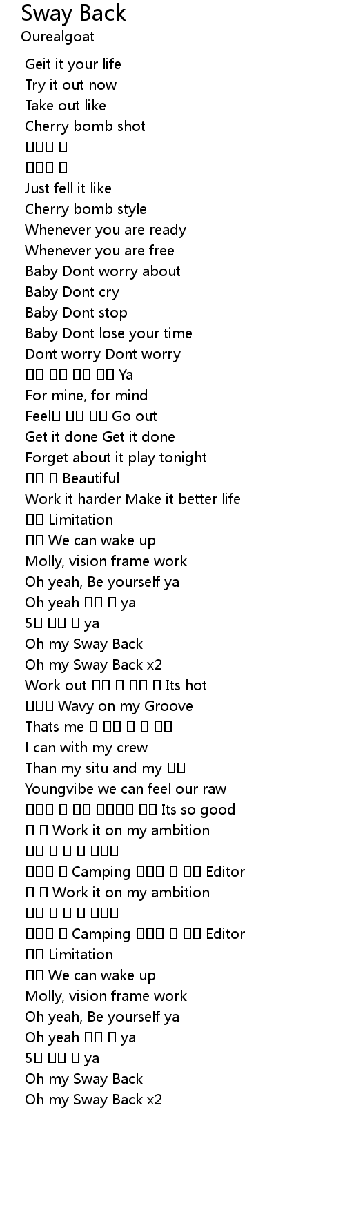| [00:58.712] | Oh my Sway Back x2 |