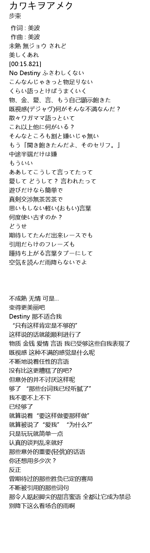 | [00:29.069] | 物、金、愛、言、もう自己顕示飽きた |