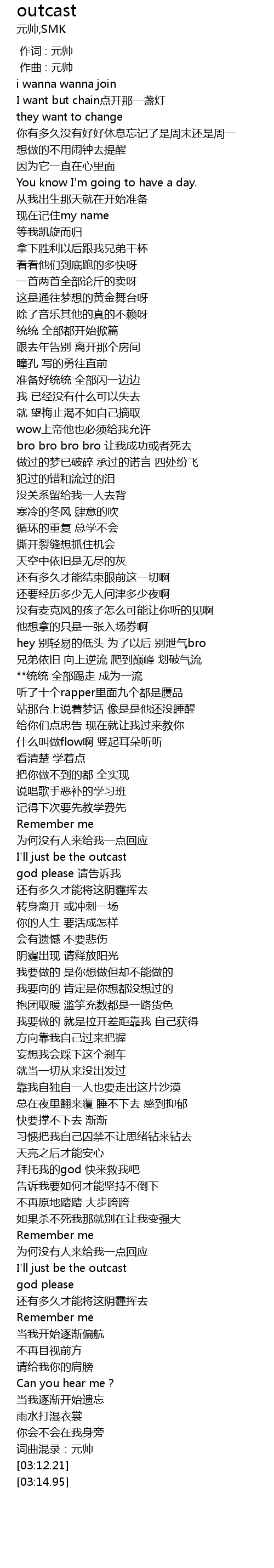 | [02:46.88] | I'll just be the outcast |