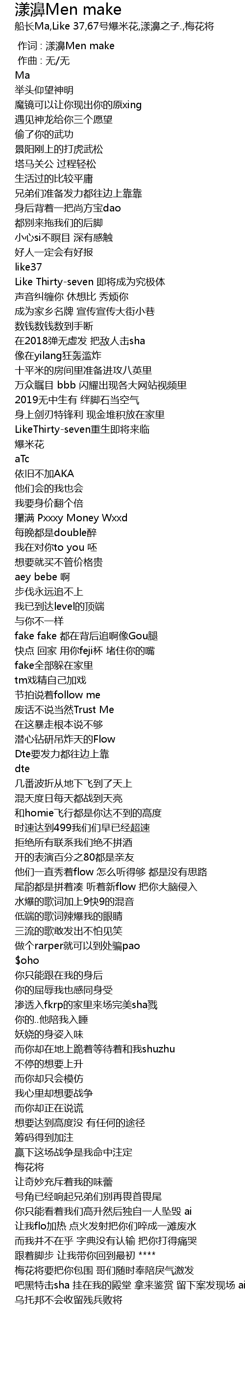 | [00:00.000] | 作词 : 漾濞Men make |