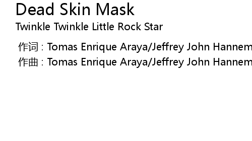 | [00:00.000] | 作词 : Tomas Enrique Araya/Jeffrey John Hanneman |