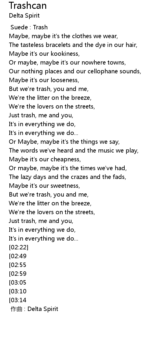 | [03:36][03:05] | Just trash, me and you, |