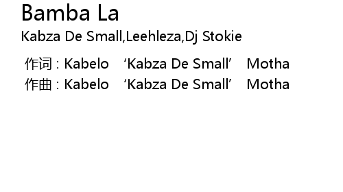 | [00:00.000] | 作词 : Kabelo ‘Kabza De Small’ Motha |