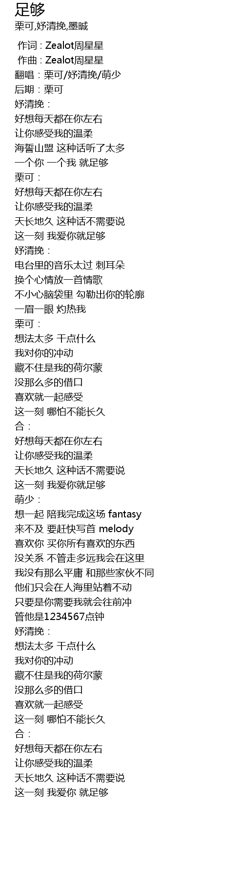 | [00:00.000] | 作词 : Zealot周星星 |