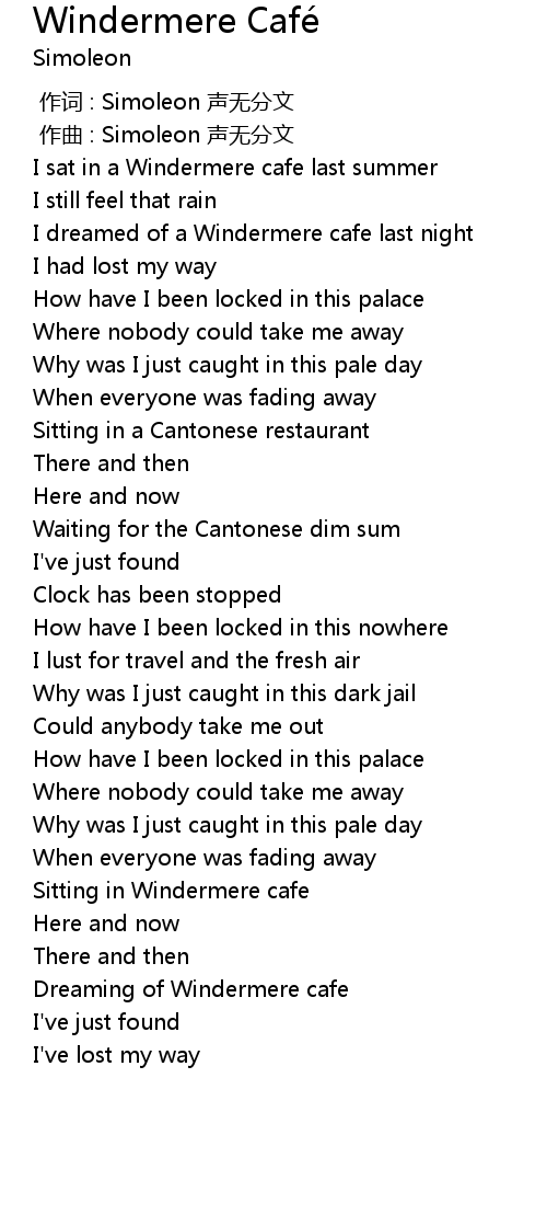 | Song | Windermere Café |