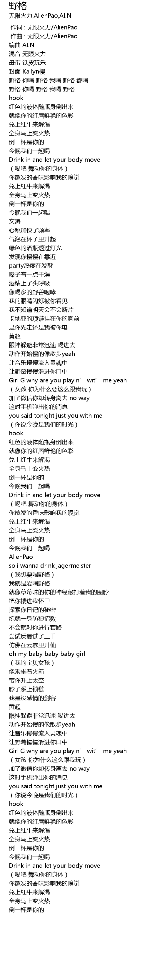 | [02:17.035] | 我就是爱喝野格 |