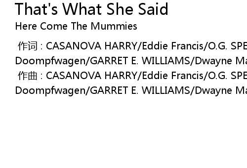 | [00:00.000] | 作词 : CASANOVA HARRY/Eddie Francis/O.G. SPEZZANO/Baron Von Doompfwagen/GARRET E. WILLIAMS/Dwayne Matthews |