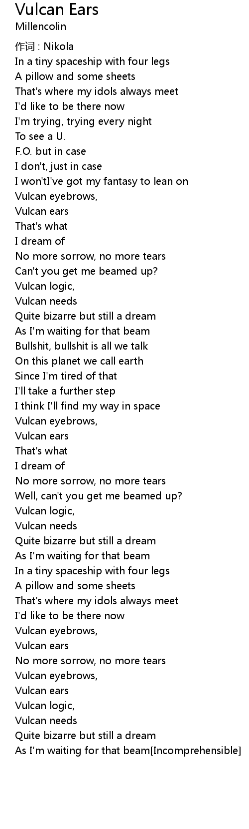 | Song | Vulcan Ears |