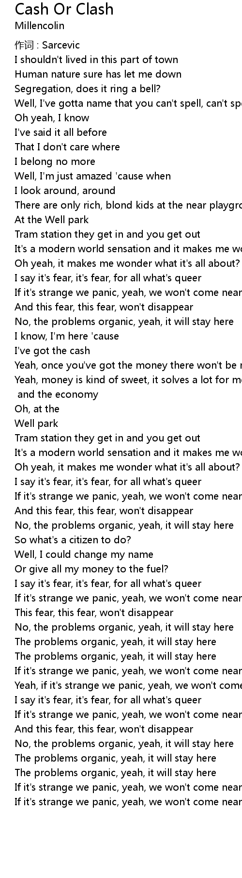 | Yeah, once you' ve got the money there won' t be no clash | |
