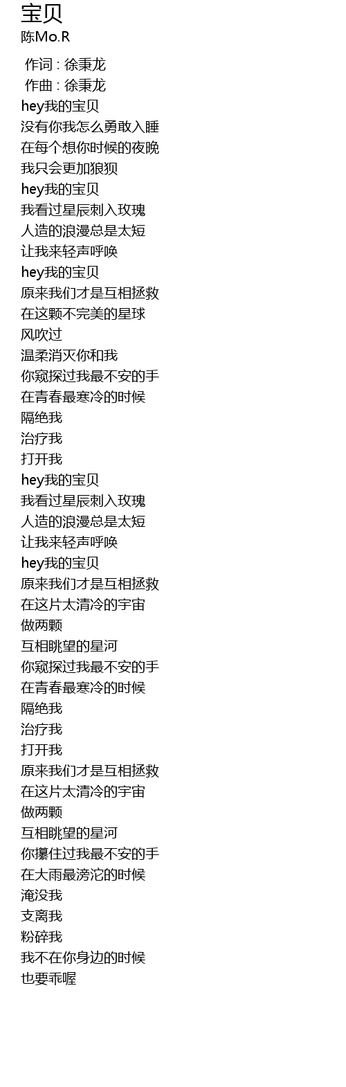 | [02:03.997] | hey我的宝贝 |