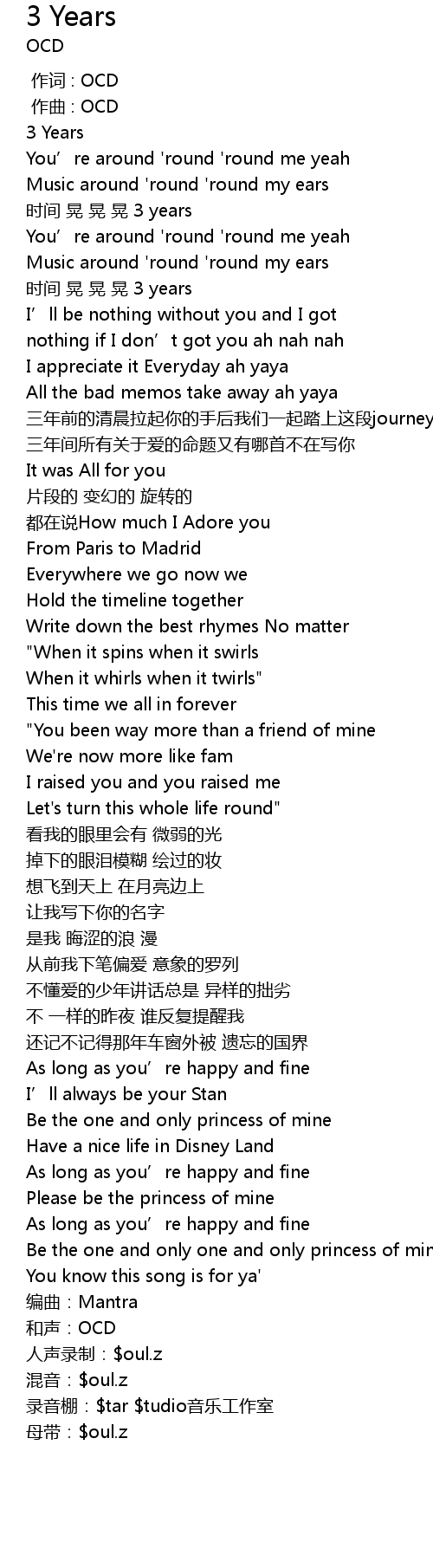 | [00:19.209] | 时间 晃 晃 晃 3 years |