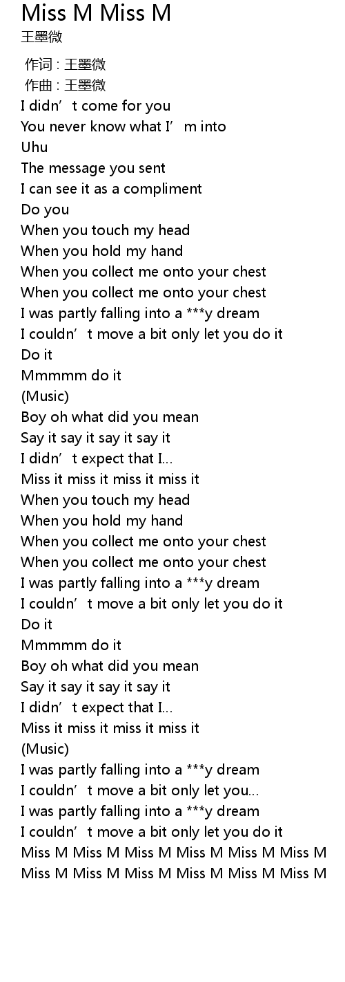 | [03:13.309] | Miss M Miss M Miss M Miss M Miss M Miss M |