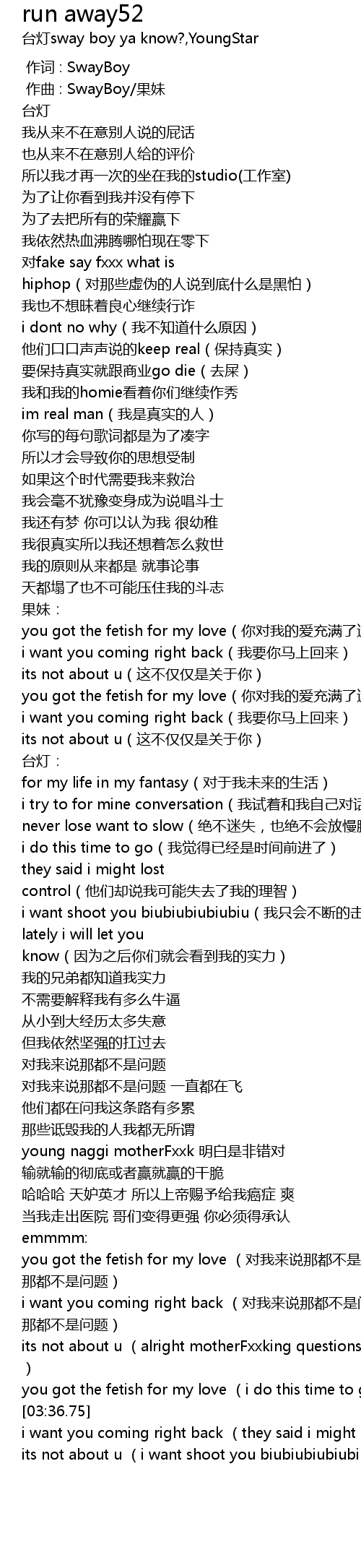 | [03:22.65] | its not about u (alright motherFxxking questions.hold back tmds **** ) |
