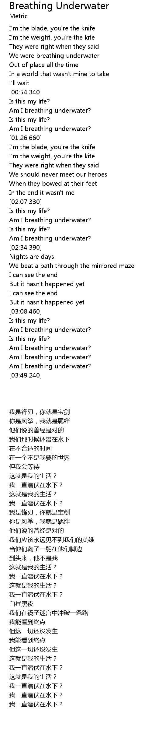 | [01:20.300] | Am I breathing underwater? |