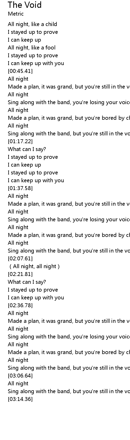 | [03:03.00] | Sing along with the band, but you're still in the void |