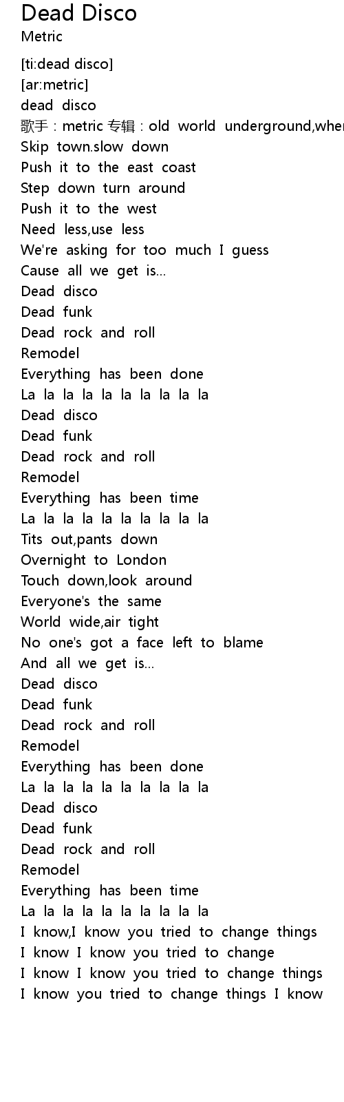 | [00:02.00] | 歌手:metric 专辑:old world underground,where are you now? |