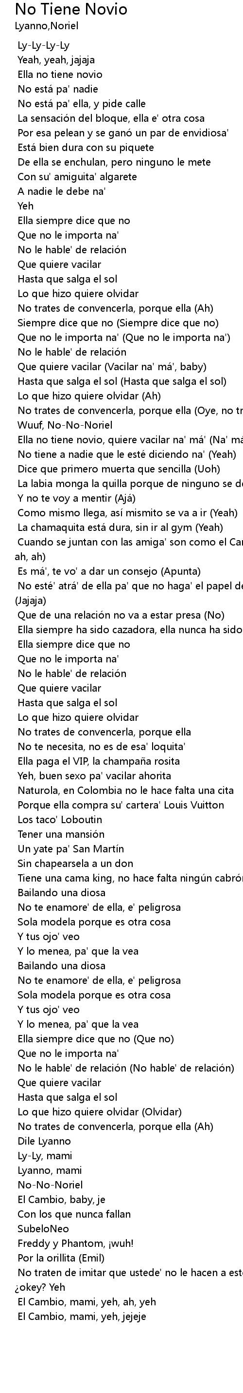 | [01:11.734] | Ella no tiene novio, quiere vacilar na' má' (Na' má') |