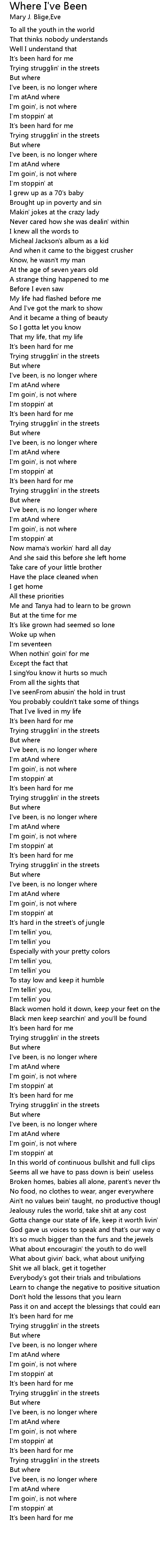 I've been, is no longer where |