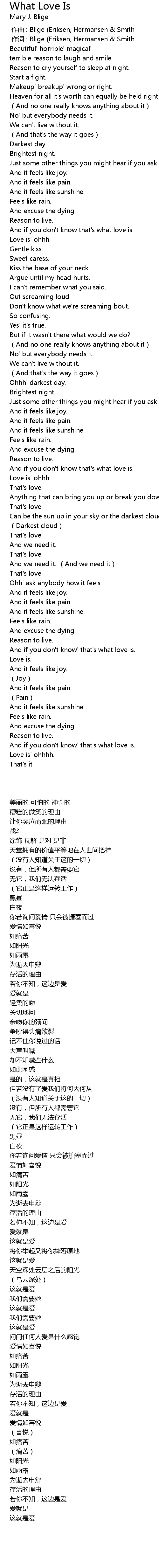 | [00:01.00] | 作词 : Blige (Eriksen, Hermansen & Smith |