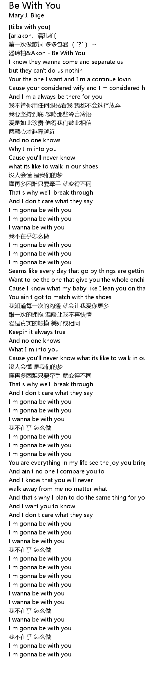 | [00:18.280] | pān wěi bǎi Akon Be With You |