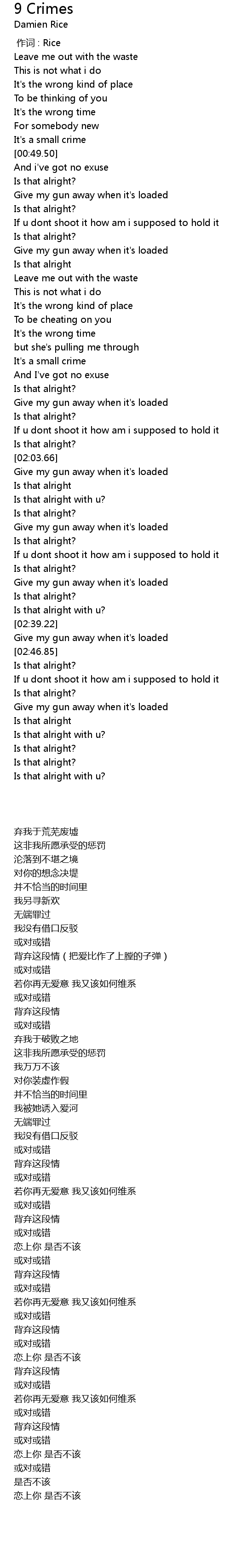 | [02:55.95] | Give my gun away when it's loaded |